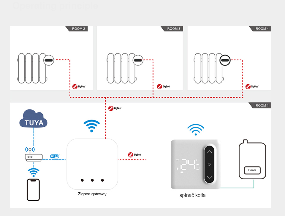 Spínač kotla Z03 je určený pre hlavice - Wifi termostatická hlavica Z03